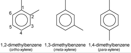 1. Le xylène a trois isomères structuraux : 1,2-diméthylbenzène, 1,3-diméthylbenzène et 1,4-diméthylbenzène (appelés respectivement ortho-diméthylbenzène, méta-diméthylbenzène et para-diméthylbenzène).