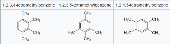 b) isomères de tétraméthylbenzène.