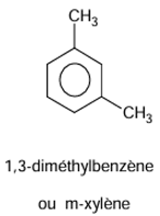 - Le méta-xylène a deux groupes –CH₃ en position 1 et 3.