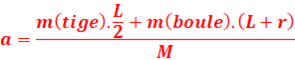 m’ est la masse totale de la tige + particules m’=M+m+m=2+0,1+0,1=2,2kg