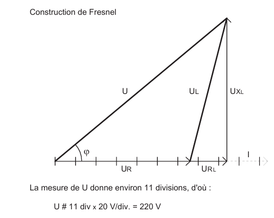 2 - La mesure de UL donne environ 7,2 divisions, d'où : U L = 7,2 div x 20 V/div. = 144 V