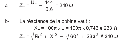 3 - Calcul de l'impédance ZL de la bobine réelle :