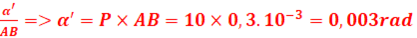 3) β = P.AB = 550 x 10-4 = 0,055 rad