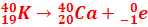 Masse du potassium radioactif : n’=0,01167/100x4,2 = 4,9014.10-4 mol donc m’ = 4,9014.10-4x40 = 1,96.10-2 g de potassium radioactif.