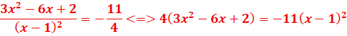 Soit x, l’abscisse de ce point, on doit avoir f’(x)= -11/4 pour que la tangente à ce point soit parallèle à la droite