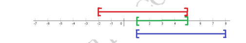3. IUJ=[-2 ;8] en orange et I⋂J=[1 ;5] en vert