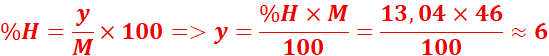 2. H : 0,090 / 18 = 0,005 mol × 2 = 0,010 mol