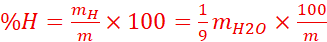 H₂O contient 2 g de H pour 18 g de H₂O