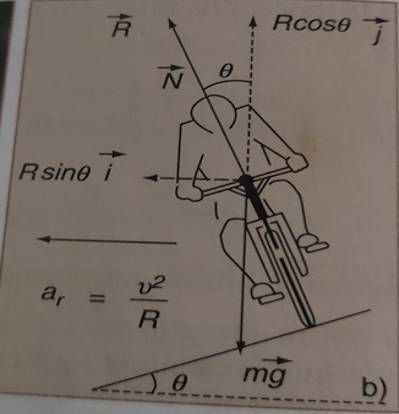 force centripète ici est attribuable à la composante horizontale Rsinθ de la réaction.