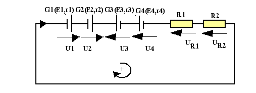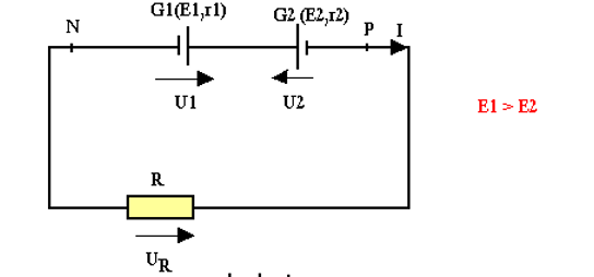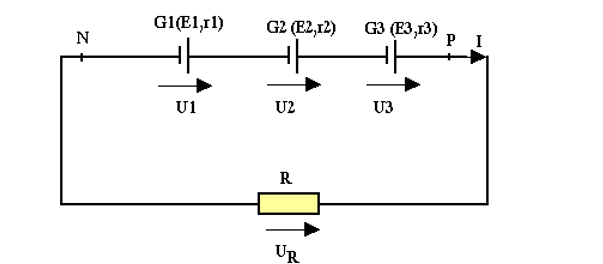 comprenant un générateur de fem E, de résistance interne r, et un résistor de