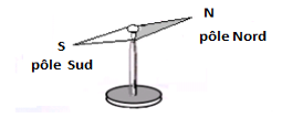 un aimant qui s’aligne naturellement avec le champ magnétique terrestre.