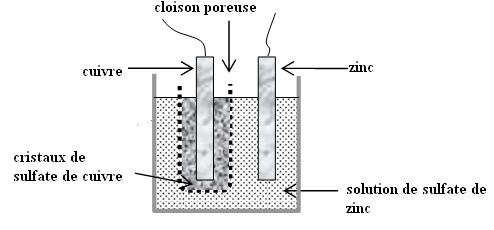 solution en solution en Cu2+, on dépose au fond du vase poreux des