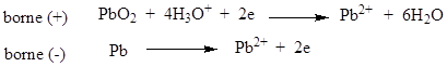 a au pôle négatif (production d’électrons) Pb = Pb2+ + 2é.