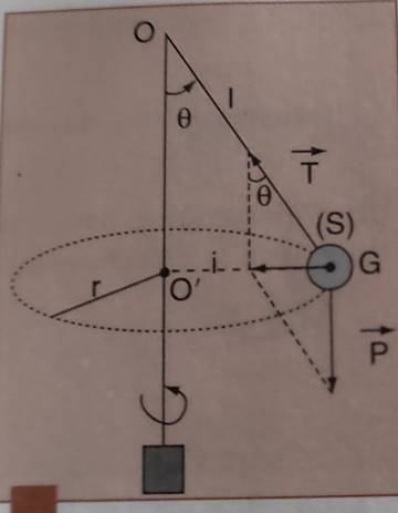 Pour une valeur suffisante de ω le fil s’incline d’un angle ϴ et la boule décrit dans un plan horizontal un mouvement circulaire uniforme de centre O.
