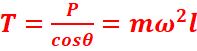 avec cosθ=P/T= ω2l2=>T=mω2l2