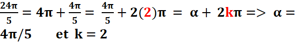 2eme méthode :α=24π/5-2kπ