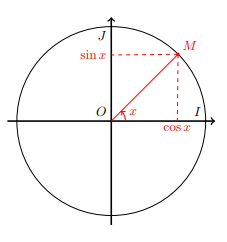 Ainsi l’axe des x est considéré comme l’axe des cosinus et l’axe des ordonnées comme l’axe des sinus.