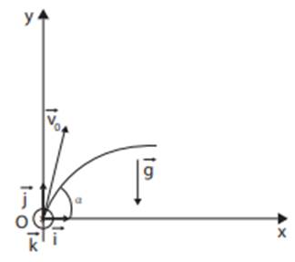 Le joueur, tirant le coup franc, communique au ballon une vitesse initiale V0 dans le plan (O,i,j), incliné par rapport à l’horizontale d’un angle α=30°.