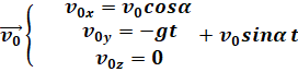 Le vecteur vitesse initiale étant contenu dans le plan vertical (xOy), ses composants sont :