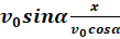 L’équation horaire x = (ν0 cosα)t conduit à :