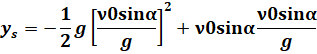C’est la distance entre le sommet de la trajectoire et l’axe des abscisses. Le sommet est atteint lorsque vy (ts )=0 et ceci est vrai à la date ts = ν0sinα/g . En introduisant cette expression de ts dans y(t), il vient :