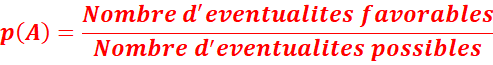 Soit p une probabilité définie sur l’univers Ω des éventualités d’une expérience aléatoire, on dit qu’il y a équiprobabilité, si tous les évènements élémentaires de U ont la même probabilité.