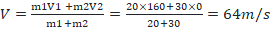 m1V1 +m2V2=(m1+m2)V