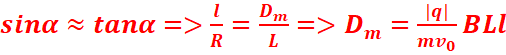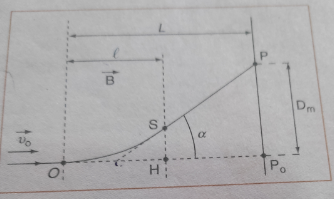 expression de la déflection magnétique Dm en onction de L, l, B, e,
