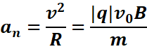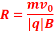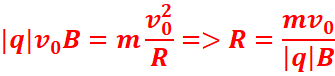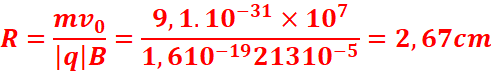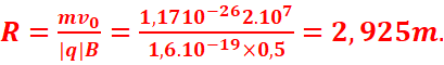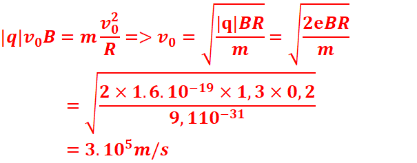 Vitesse du point A : R=mV|q|B⇒V=R|q|Bm
