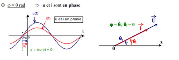 Exemple : u(t) et i(t) sont deux grandeurs en phase