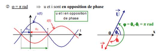 Exemple : u(t) et i(t) sont deux grandeurs en opposition de phase