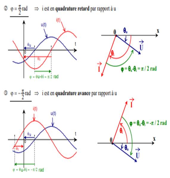 Ces grandeurs peuvent être en quadrature avance ou en quadrature retard.