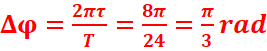 Pulsation ω1 : ω1=2π/T=2π/24=π/12.10-3