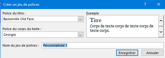 les options de la composition, le jeu de couleurs ou le jeu de polices à partir
