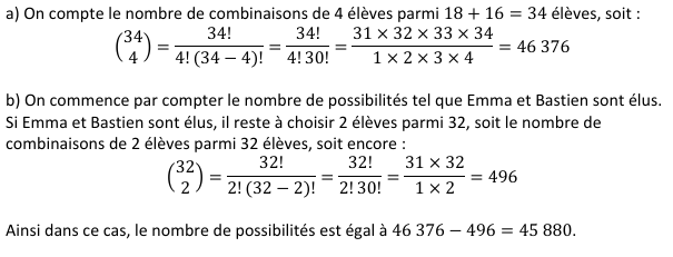 si Bastien est élu. Dans ces conditions, combien existe-t-il de possibilités ?