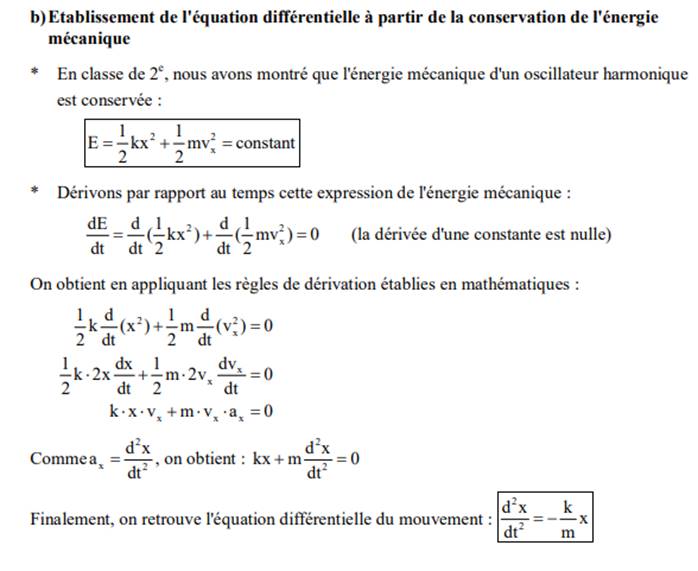 2) Déterminer l'équation différentielle du mouvement.