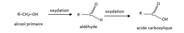 s’oxyde pour donner un aldéhyde si l’oxydant est en défaut ou un acide