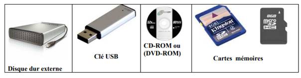 périphériques : entrée, sortie, entrée/sortie et stockage.