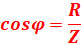 La tension étant en quadrature retard sur le courant, : φ=-π/2 donc cos φ=0.