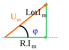 , de longueur proportionnelle à la réactance XL=Lω, est perpendiculaire à la