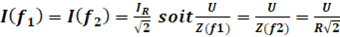 La puissance étant proportionnelle au carré de l’intensité, les limites de la bande passante sont telles que :