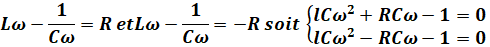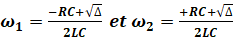 Les pulsations limites ω1 et ω2 sont les solutions positives de ces deux équations :