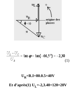 bobine sans résistance ZC>ZL, comme le montre le diagramme