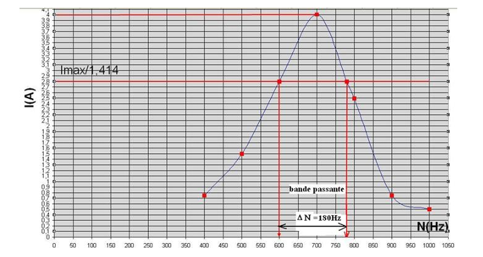 intensité du circuit RLC Pour N=No=700Hz, I=Imax=4A, c’est la résonance