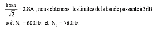 La largeur de la bande passante à 3dB est ΔN=780-600=180 Hz