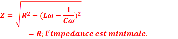 de Fresnel en impédance (ci-dessous), la tension u aux bornes de RLC est en