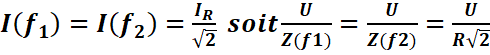Nous obtenons la courbe de réponse en intensité du circuit RLC