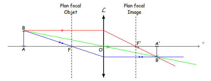 objet F émerge de la lentille parallèlement à l’axe optique.