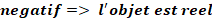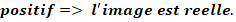 L’image est virtuelle, de l’autre cote de la lentille et renversée. Elle peut être plus grande ou plus petite que l’objet selon que la distance de celui-ci a la lentille est inférieure ou supérieure à 2f.