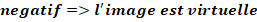 Image virtuelle, droite, à 2,73 cm avant la lentille, haute de 0,45